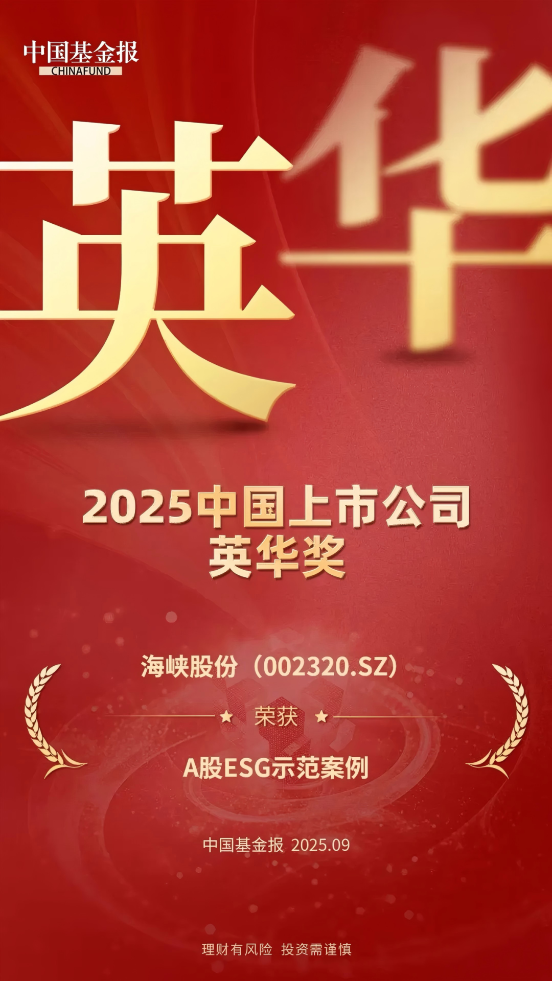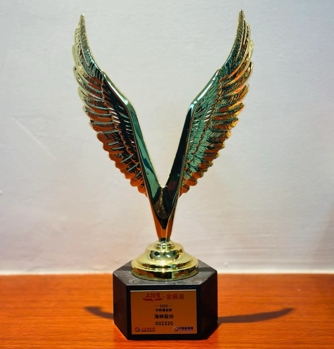 荣获2025年上证鹰・金质量“并购重组奖”及“公司治理奖”。该评选由上海证券报与中国证券网联合主办,是中国资本市场极具公信力与行业影响力的品牌活动,此次获奖源于海峡股份在治理、并购、管理层能力等领域的突出表现,彰显其资本运作与规范发展的双重硬实力。