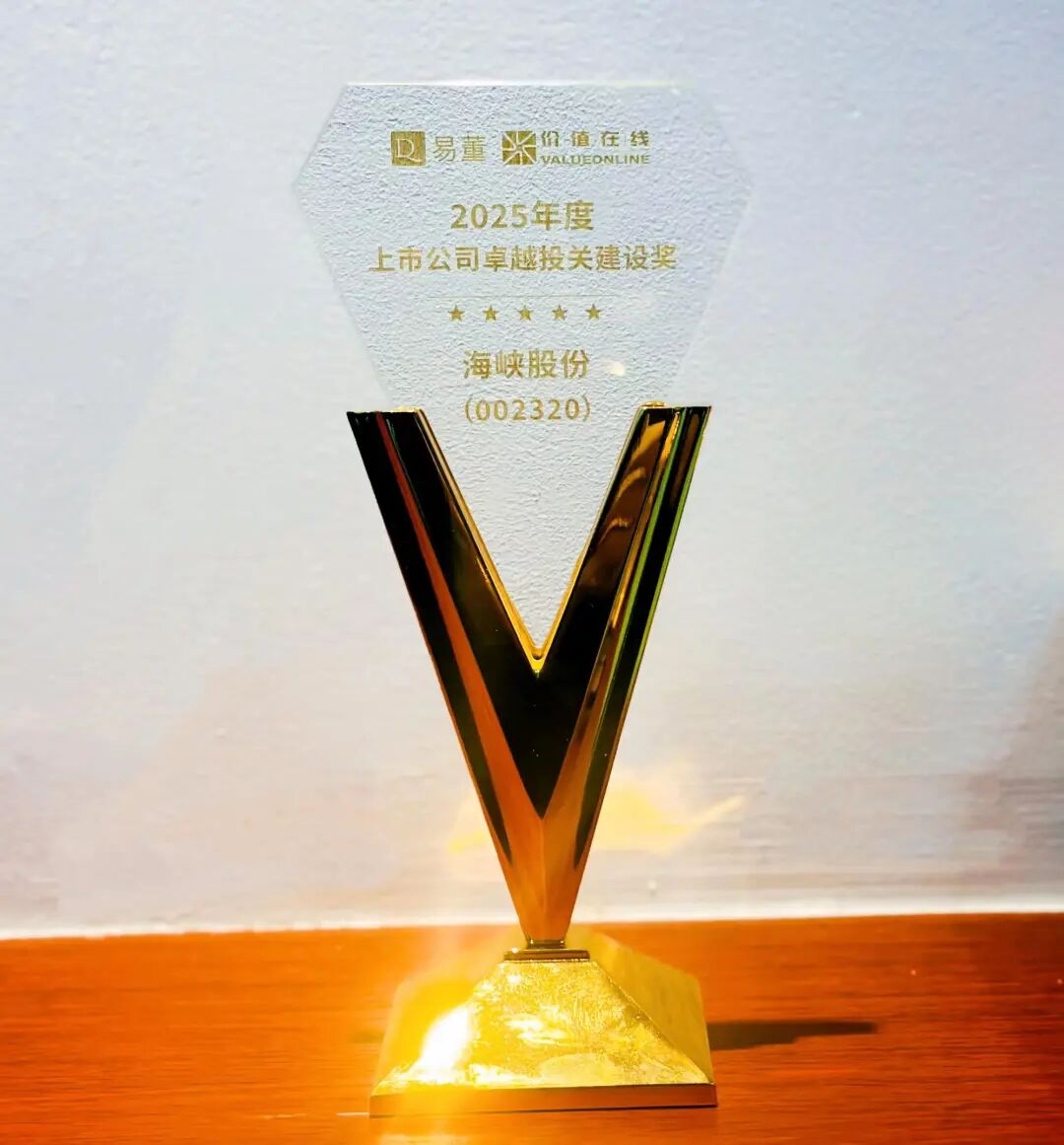 荣获证券市场周刊金曙光投资者关系奖。该奖项由证券市场周刊主办,充分展现海峡股份在信息披露及投资者沟通等方面的扎实功底,有效强化投资者认同感与信心,为深化市值管理及实现长期价值增长筑牢基础。